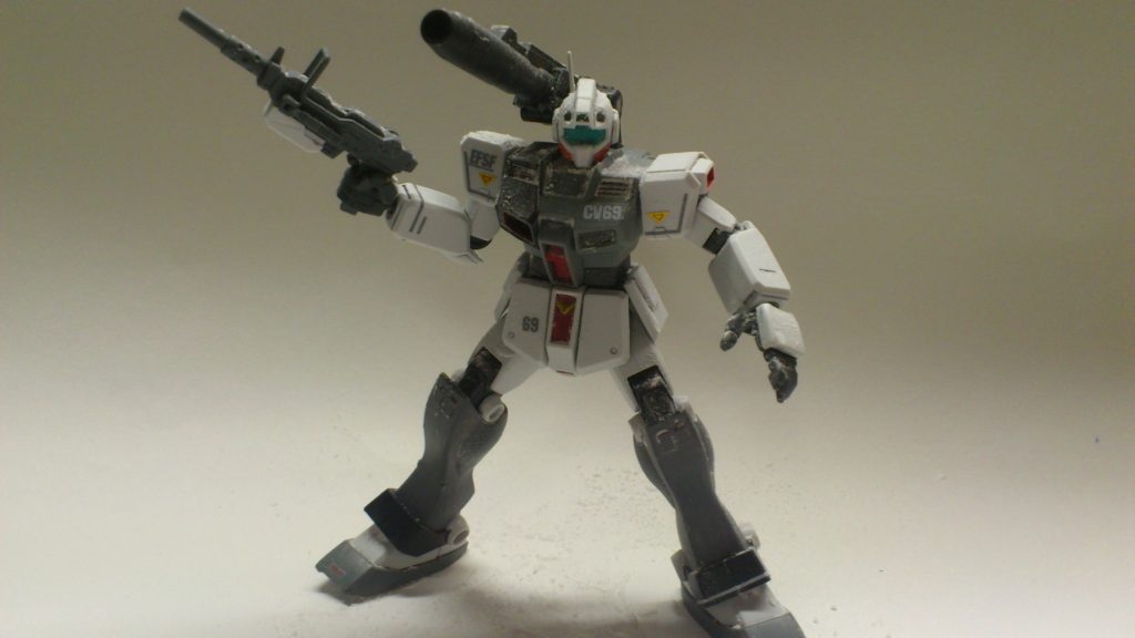 脛のカラーリング変更とアンクルアーマーを更に一段暗くしたのが中々にいい感じです。この辺りのジム系キットだとアンクルアーマーが張り出した形状なので、視覚効果として締まって見える色をチョイスしたのは慧眼だと思います。(片栗粉乗せた時に目立ちますしね!)