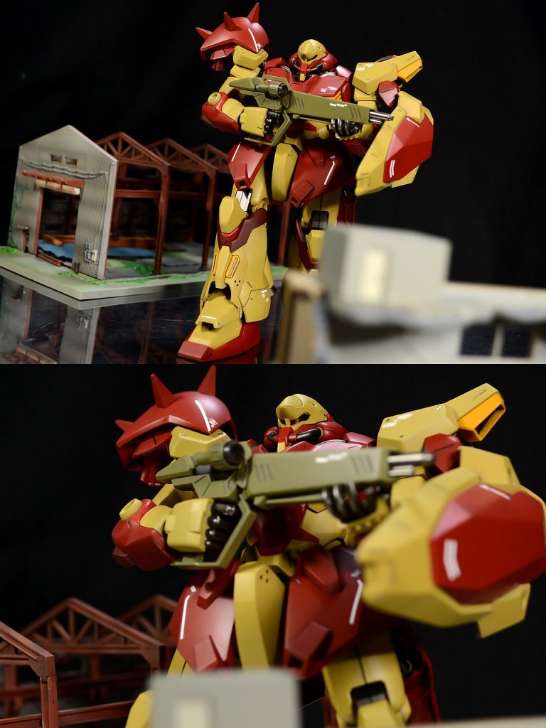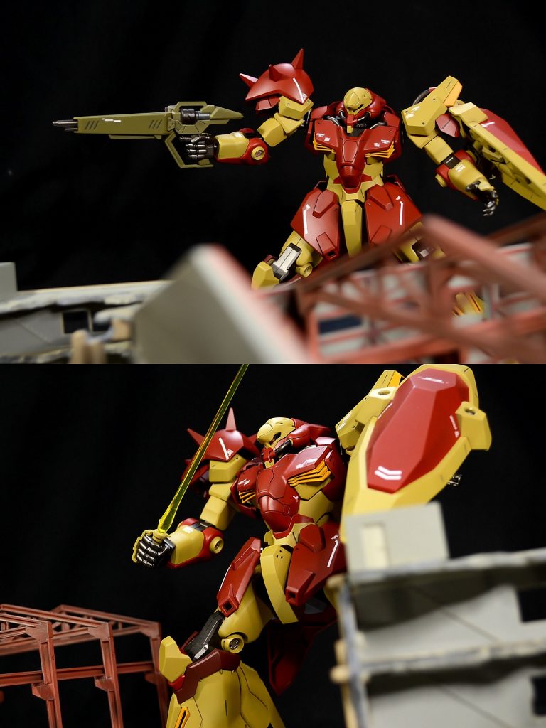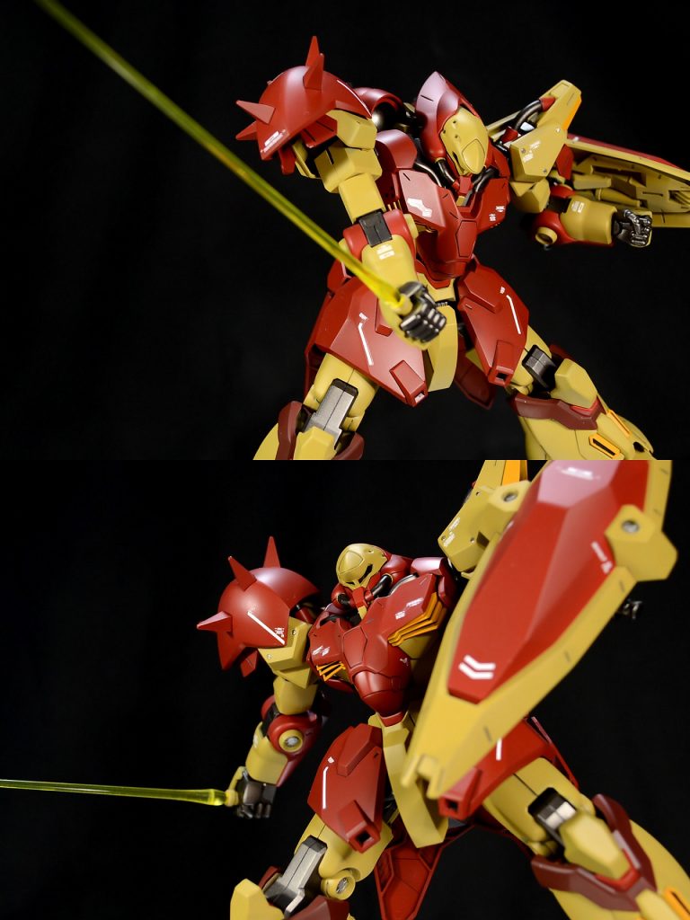 一部メタルパーツやエッチングパーツによるディテールアップを行いました。モノアイもクリアーパーツに置き換えています。