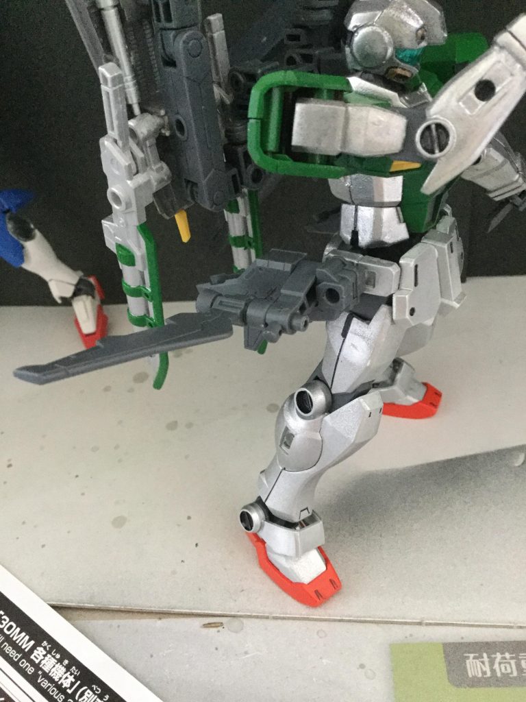 バックパックは当初GM/GM(右)を使うよていでしたが、武器マウント用のアームを差し込んだらポロポロ落ちたのでポリキャップも仕込んで見たものの改善せず。30MMポルタノヴァのバックパックが余ってたので使用してみたら良い感じにフィットしたのでこちらを採用。