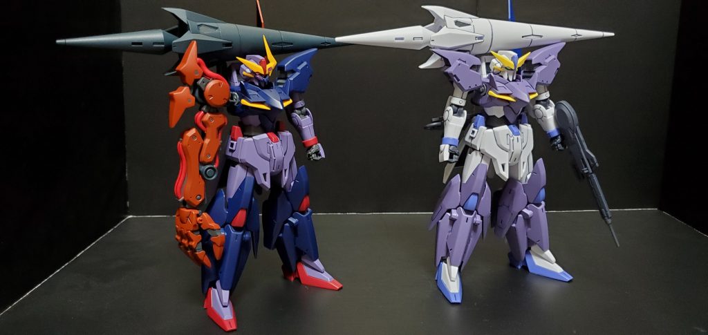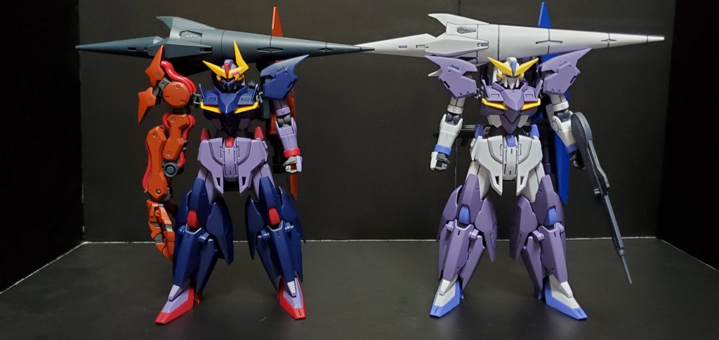 ゼルトザームと比較。成形色、右手、追加の顔パーツの有無で印象がガラリと変わっています。