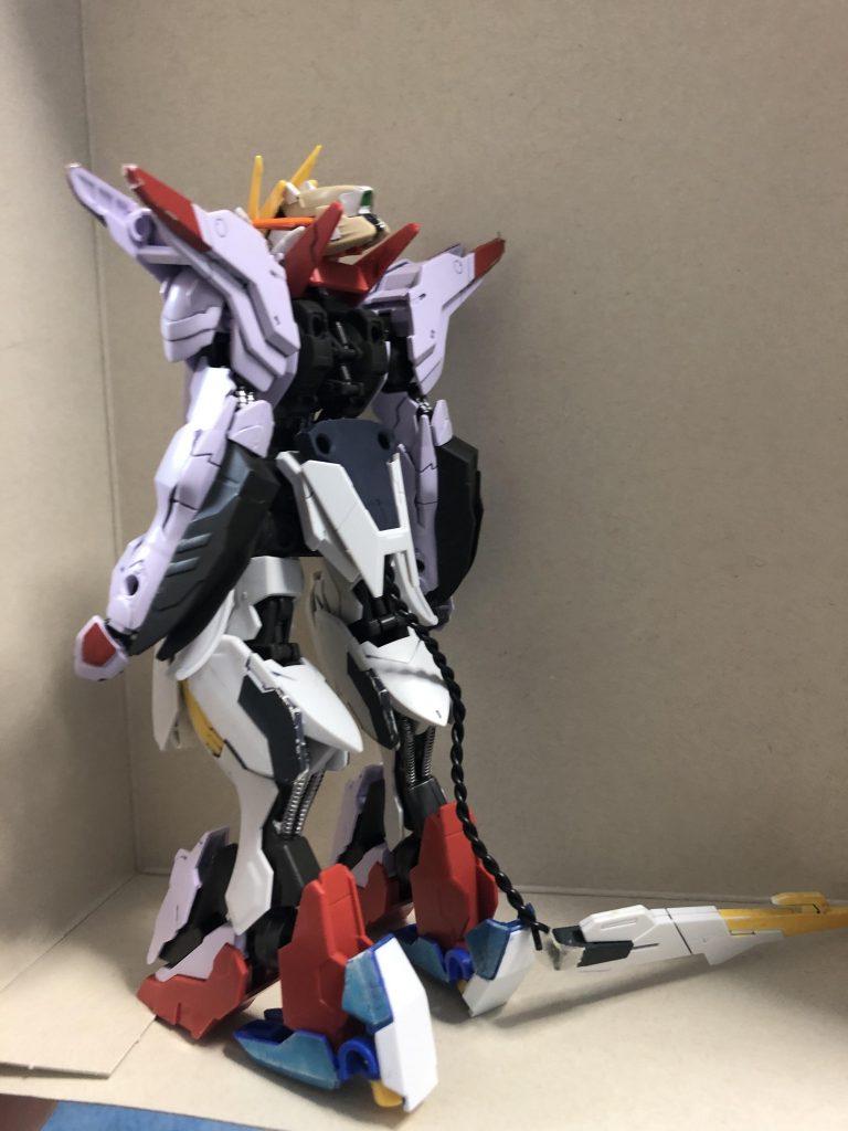 以前投稿したガンダムマルバスの二号機です。マルバスの別名がバルバスと言う名前にしました。姿を変えるというコンセプトを引き継いで反転すると別の機体になるようにしました。バルバトスルプスレクスとマルコシアスのミキシング機体です。