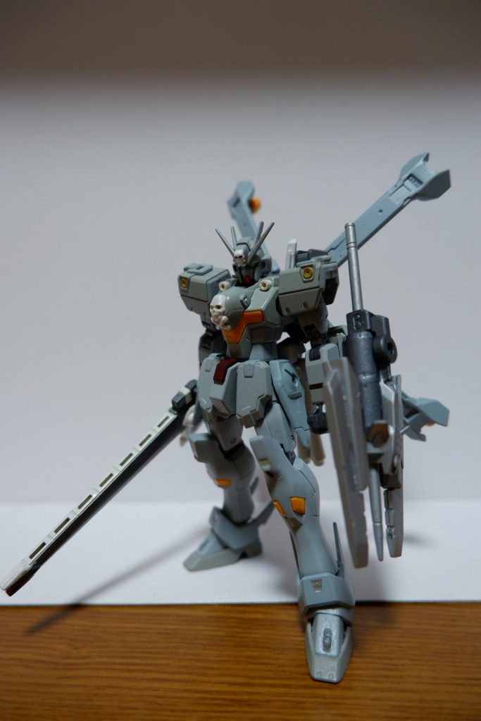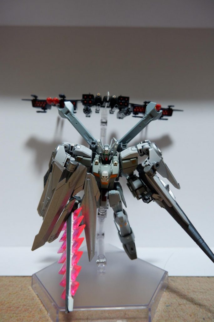 フルクロスユニットは以前と変更なし。ノーネイムライフル改造。マント状のパーツはGNフェザーファングとして分離する設定。