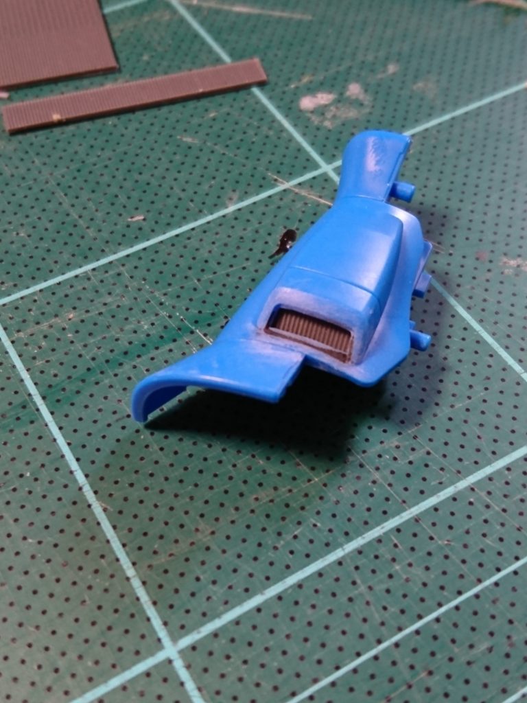そうすると盾の裏に収まらないのでプラ板でオリジナルの鞘を作って自作ホルダーと盾の間にボールジョイントで接続しました。