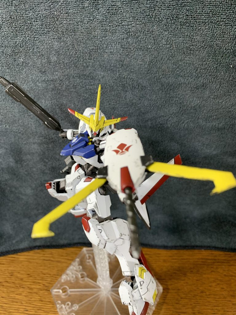 アプリ版鉄血登場機の、ガンダム端白星をヒロイックカラーで仕上げてみました。 キットそのものの出来が非常に良く、加工はライフルの合わせ目を消して、シールドクローの先端を延長して尖らせたくらいです。