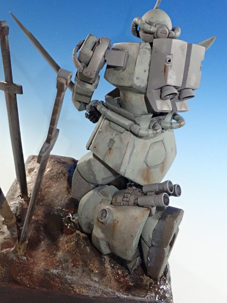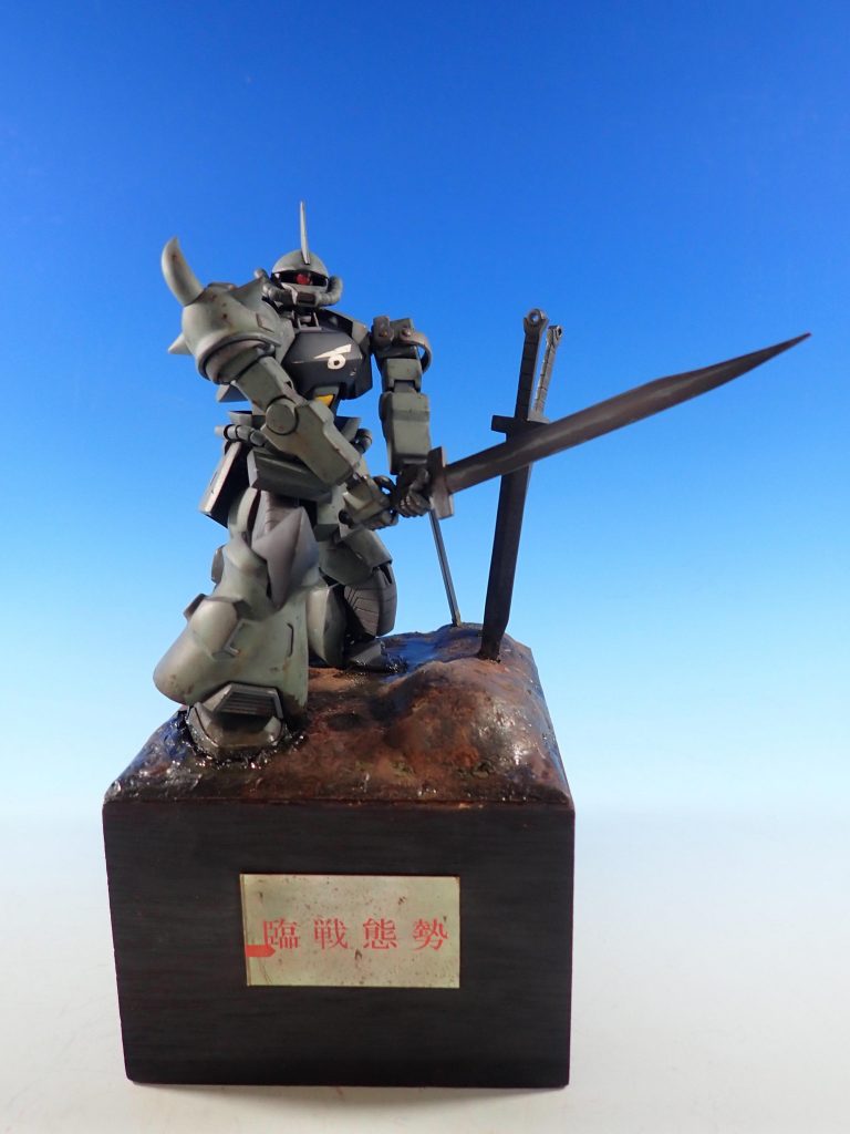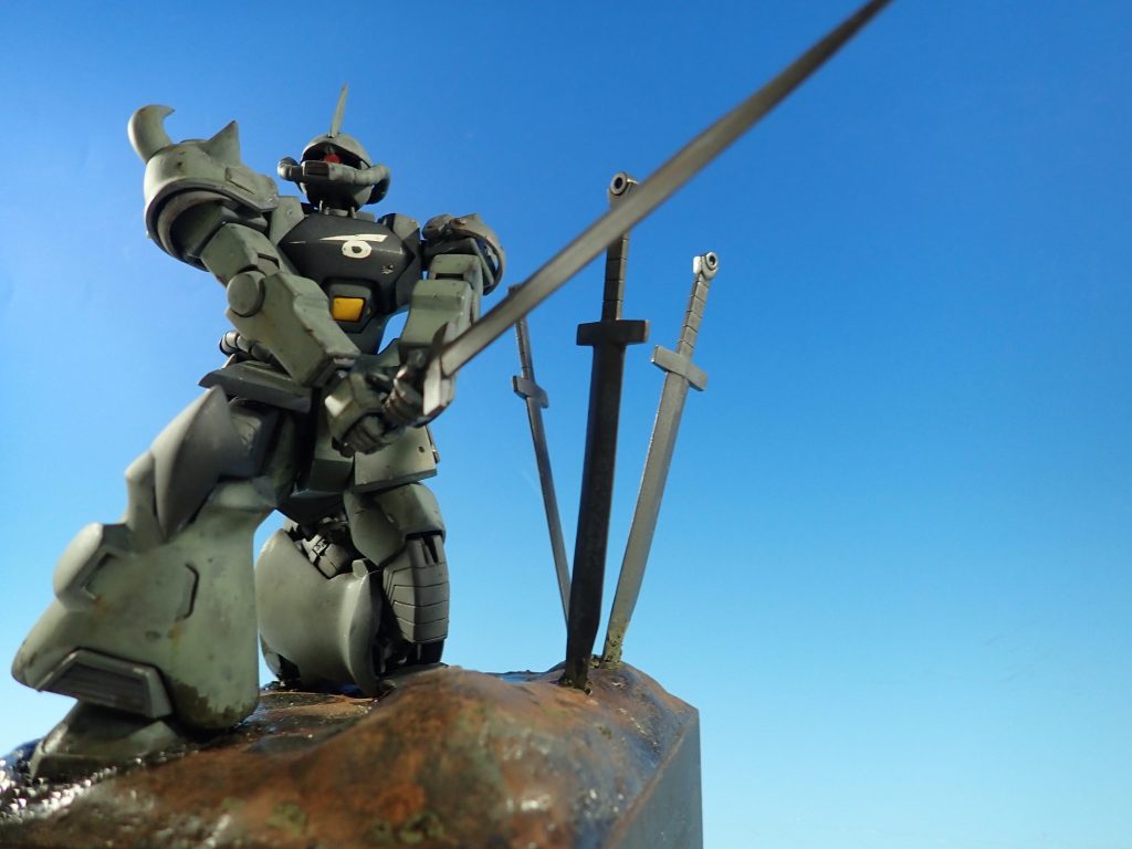 劇中のヒートサーベルを突き立て,敵を待つ様子を再現したジオラマになります.