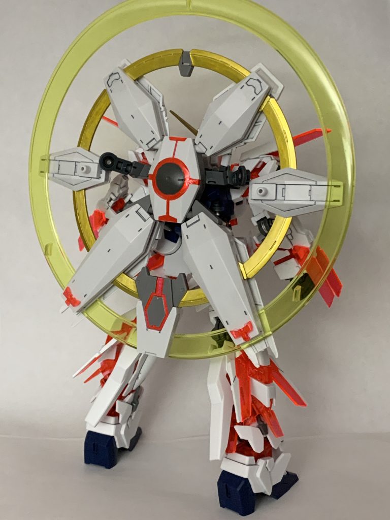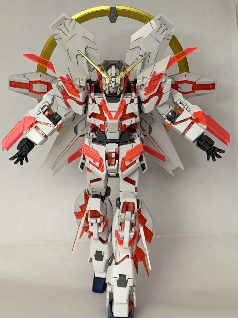 フルサイコフレーム機であるユニコーンガンダムの外装に、さらにサイコフレームを増設させている。