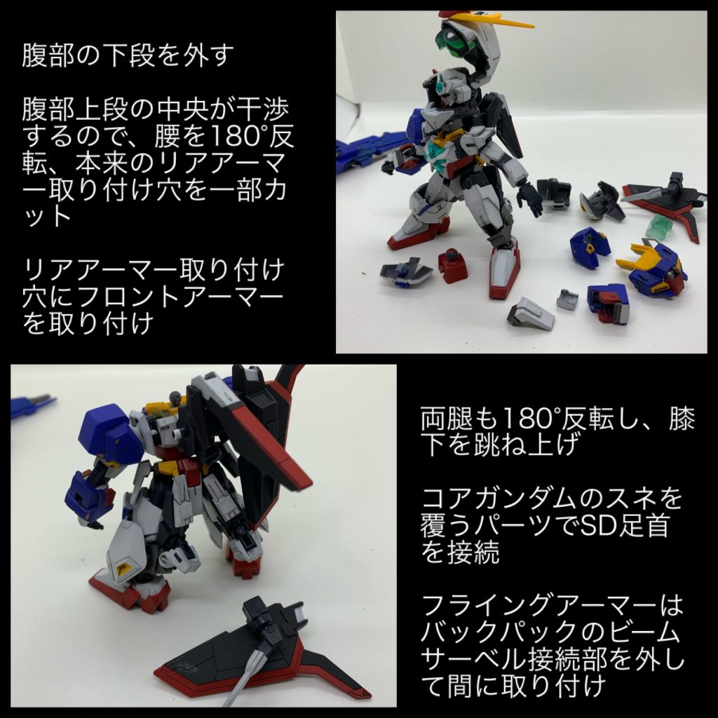 塗装前です。SDCSのZガンダムをコアガンダム2に着せてます。肩と前腕は2mmほど幅増ししました。コアディフェンサーの黄色い羽部分は可動式にしてます。