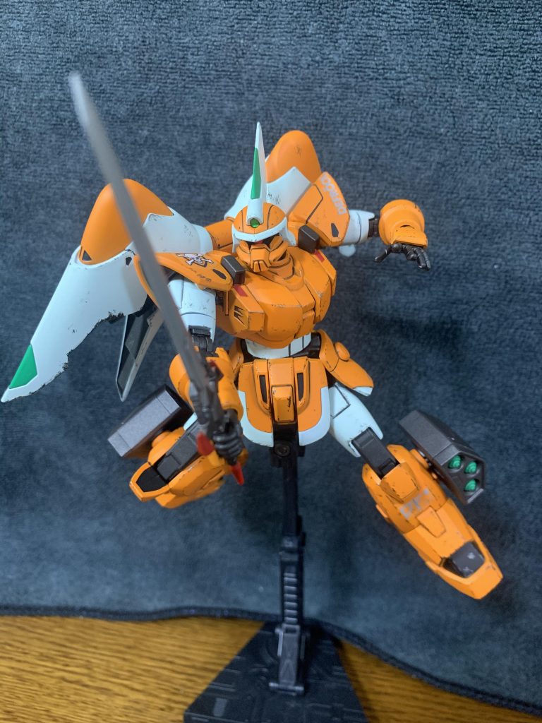 以前製作したハイマニューバ2型同様、肩や肘、股関節など可動範囲の狭い箇所を、今現在のガンプラ基準並にしたいと考え、膝関節と外装・武器以外は結構手を加えました。