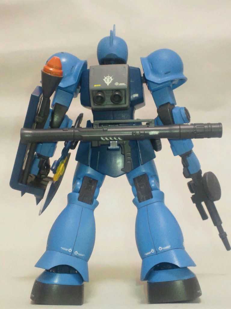 MS05の頭部と胸部のデザインはグフのデザインに近い雰囲気があるし、ギレンの野望の、胴体の青が手足よりもやや薄いバージョンよりも、この作品のようなグフに近い配色の方がしっくりきますね!