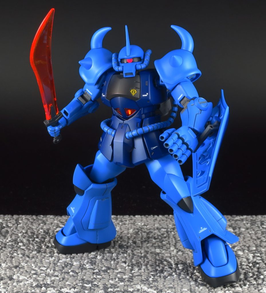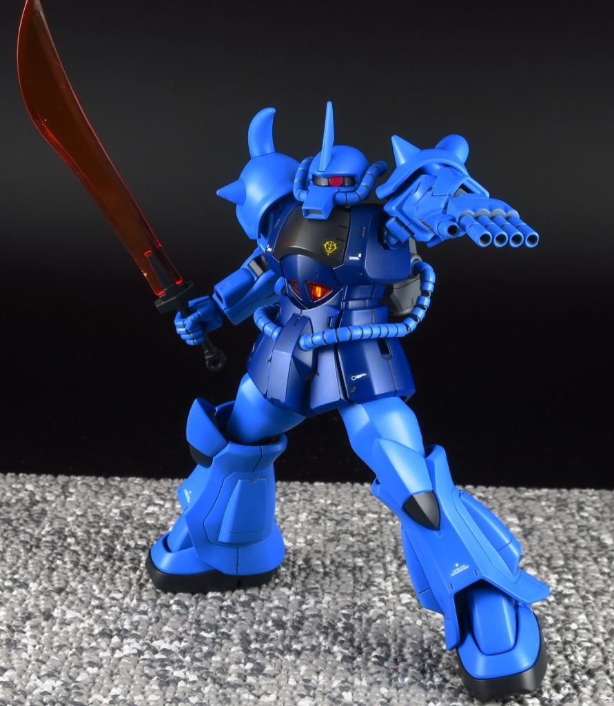 グフのフィンガーキャノンって、モノを握る汎用性が殆どないなら、そもそも手の形をしている必要性ないじゃん?って思うけど、この指が全部砲身になってるというギミックにはやっぱりロマンがありますよね。かっこいい…。
