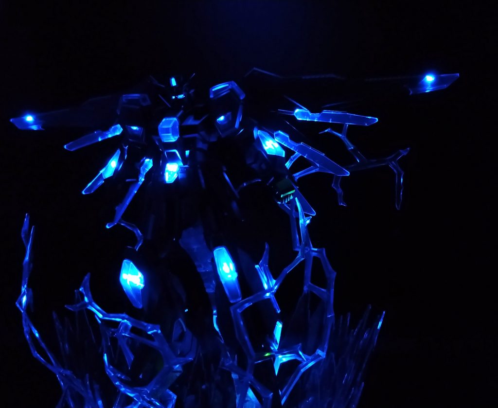 魔が差して、クリアパーツ全てにLEDを仕込みました。観賞用ガンプラです。