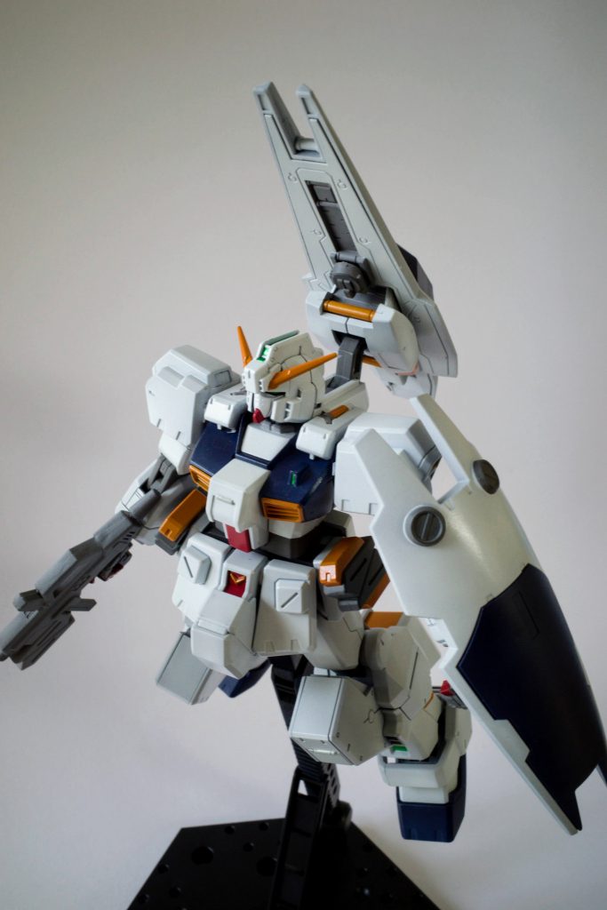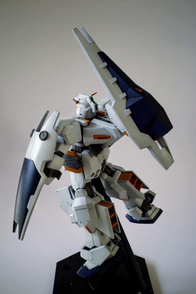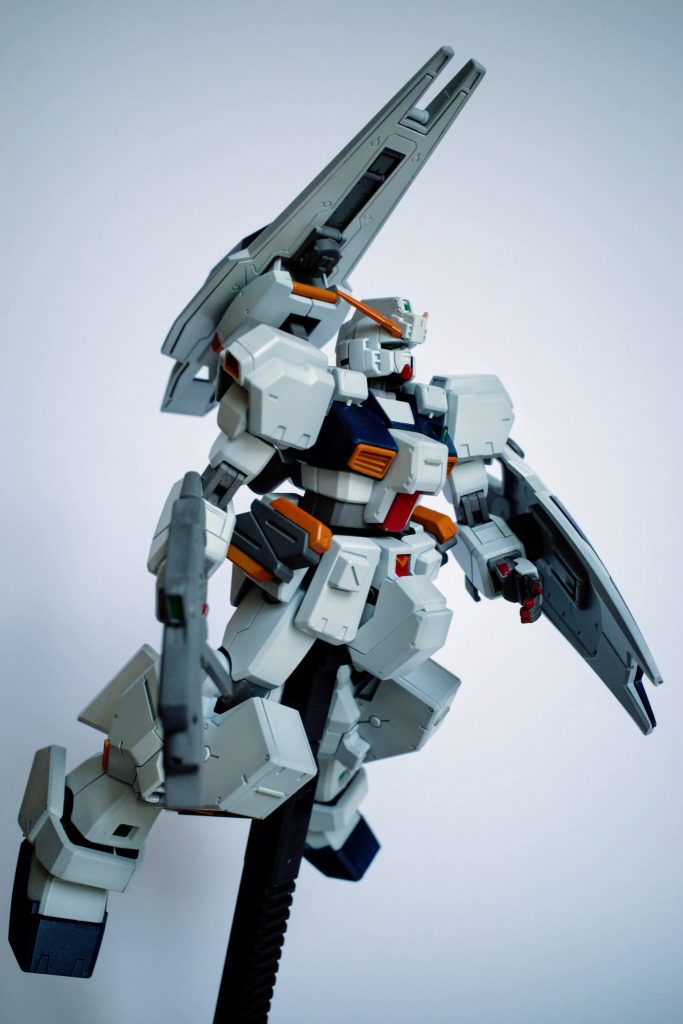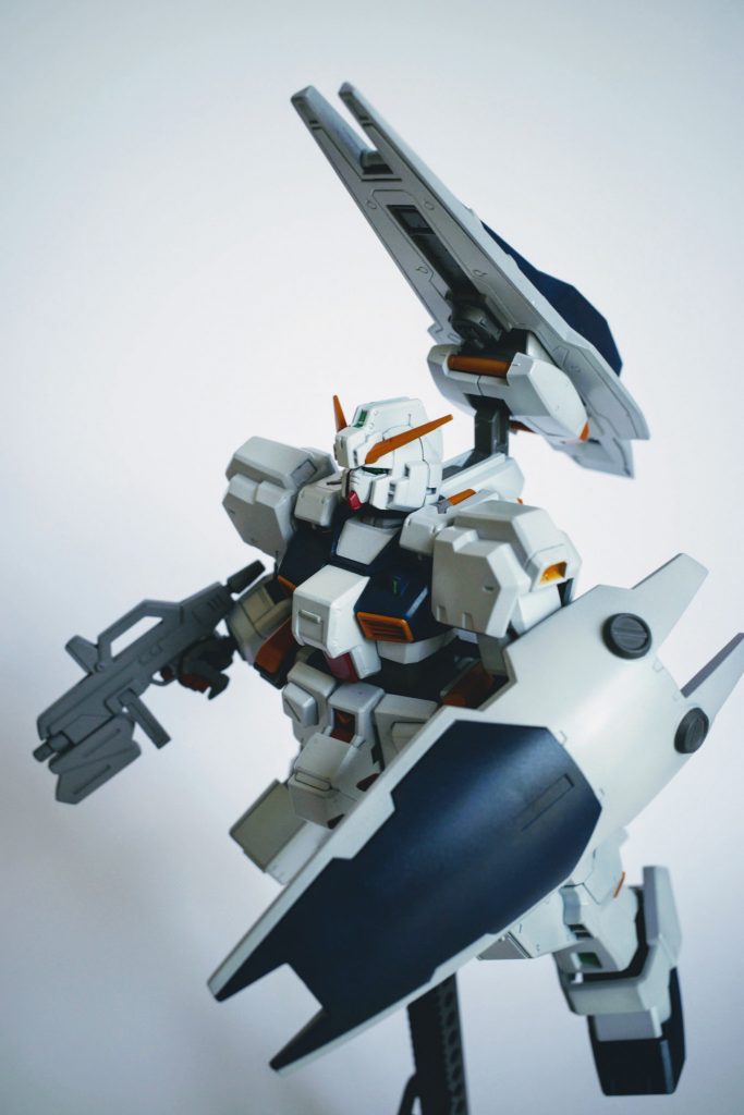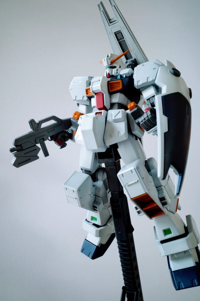 RX-121-1 ガンダムTR-1[ヘイズル改]です。元はアドバンスド・ヘイズルでしたが塗装してヘイズル改に改修しました。エアブラシに初挑戦です。エアブラシってすごい。もう筆全塗装には戻れません。ディターンズカラーの黒ガンダムが白のヘイズル改へ綺麗に生まれ変わった時は感動しました。
