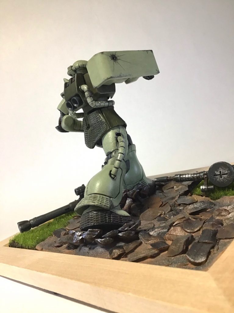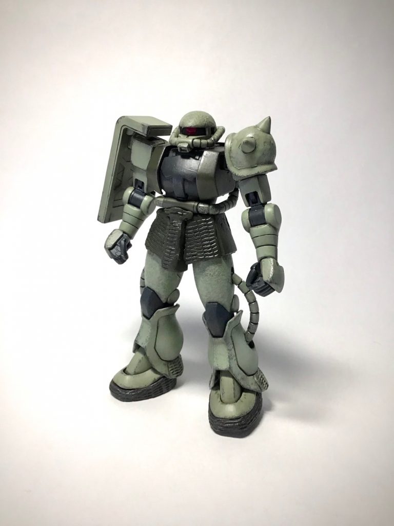 みたいなノリで作成しました。元はHGUCシャアザクで量産型にカラーチェンジしております。汚しに関してはウォッシングとチッピングのみで仕上げています。