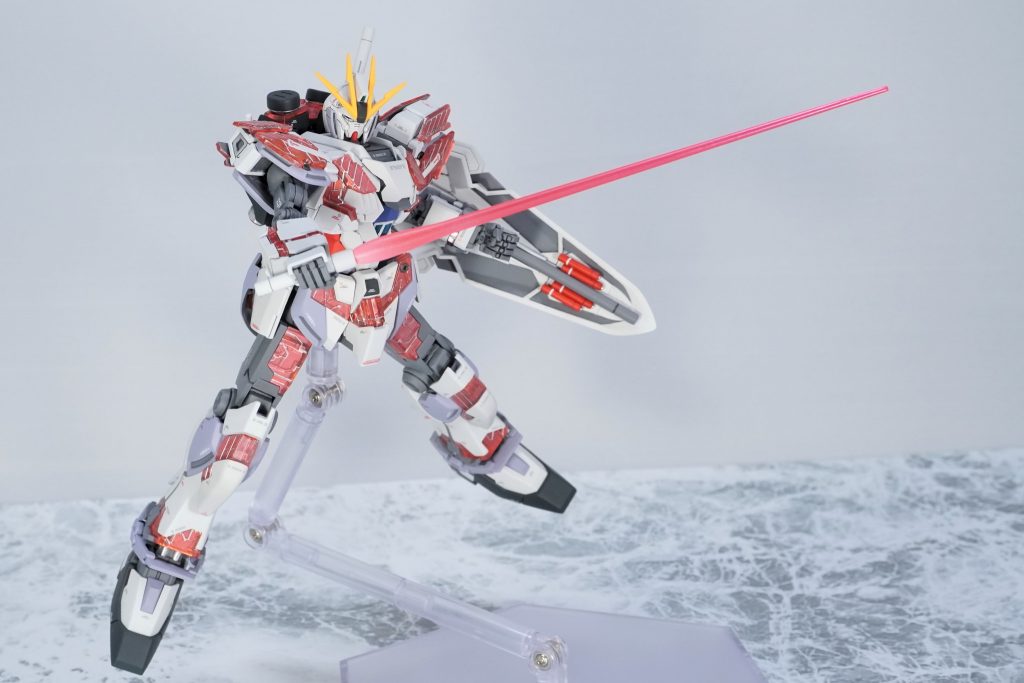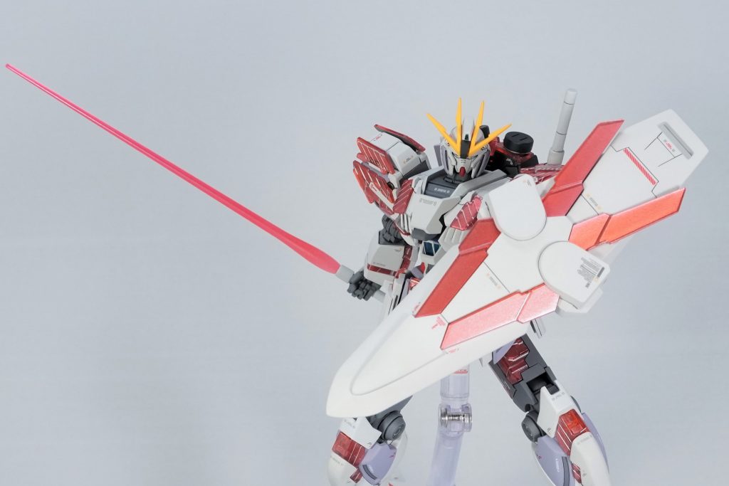 サイコフレームは内側からパール塗料+蛍光塗料→シルバー→フレーム色で塗装 クリアパーツを生かして結晶体のようですが光を拾うとしっかり輝きます