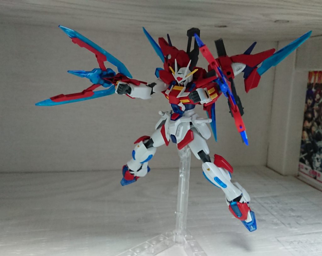 背中に背負っているバックパックに装備されているソードユニットのビーム刃の演出と近接戦闘特化機を思わせる機体という演出を醸し出しているのが良いですね。