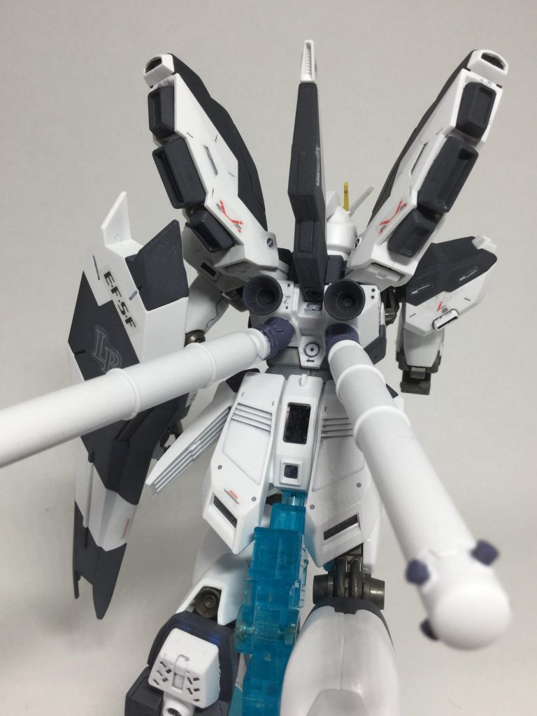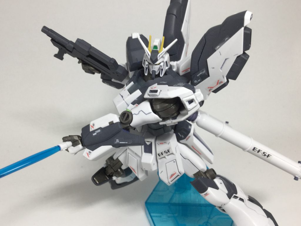 オールドタイプのパイロットに合わせて、フィン・ファンネル並びにサイコミュをオミットし、背部にはスラスターが追加されている。手持ちの武器もビームマシンガンへと変わっている