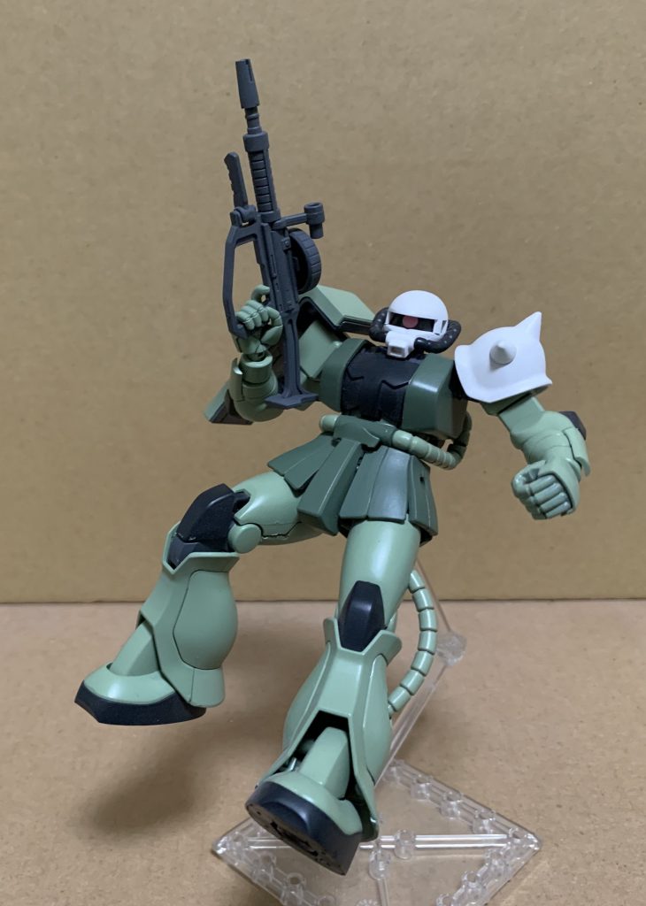 エース専用機のザクで、こういった感じで一部だけにパーソナルカラーが塗られている機体って意外と珍しい気がします。