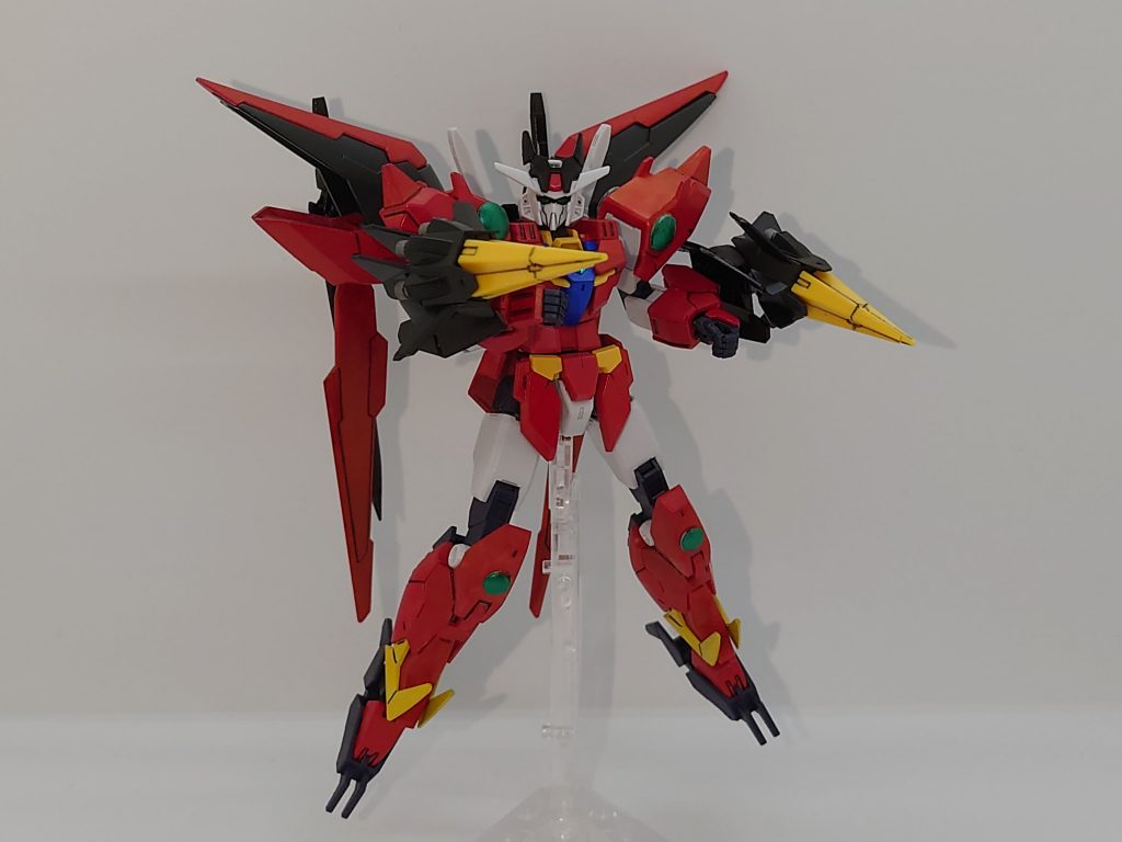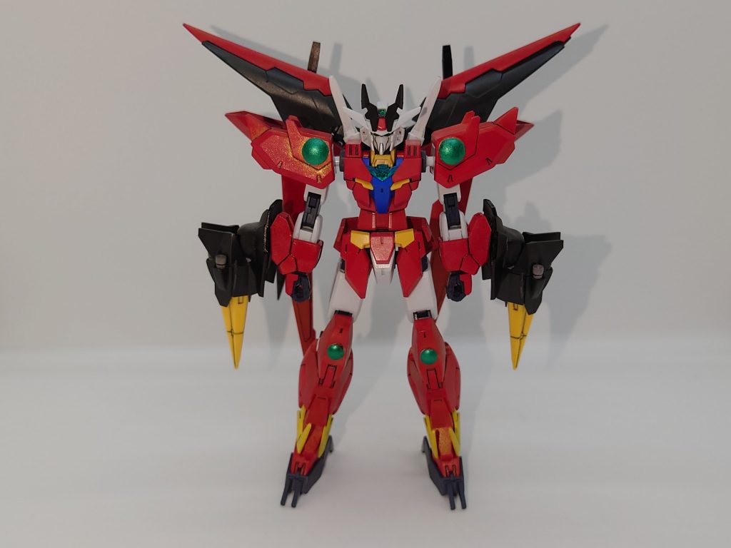 背中に搭載したGNドライヴによって武器の刀身にGN粒子を定着させ、高い切れ味を持たせている想定で製作しています。