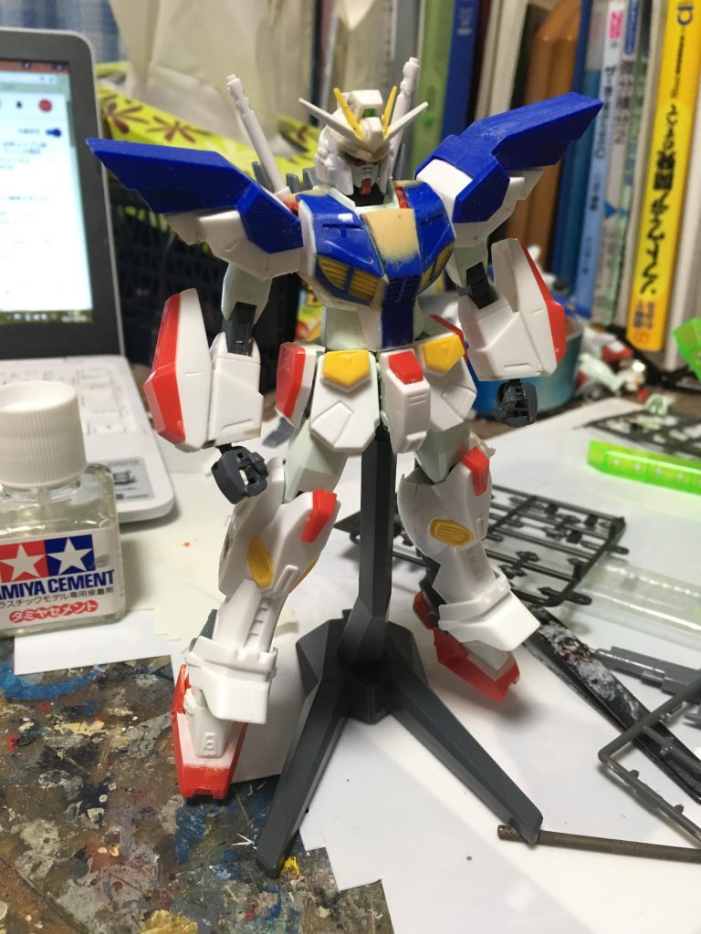 ビームサーベルはバックパックにGM/GMのサーベルを刺さるように調整。カラーリングは好みでF901号機のものを参考に変更してあります。