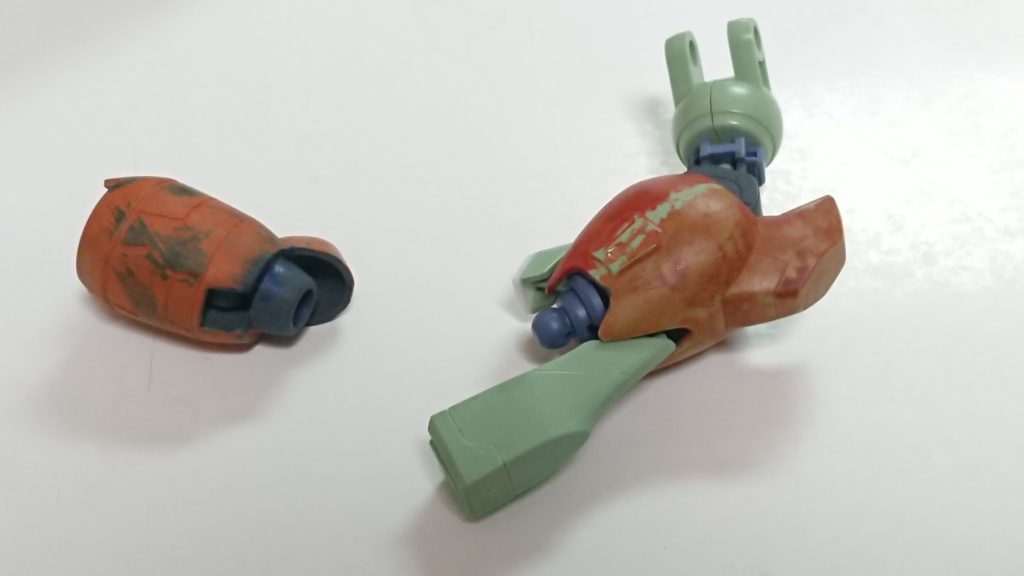 脚部のスラスターっぽい所はパテで全部埋めてビルドダイバーズのマシンライダーのタイヤをつけて、MTやNFやみたいな感じにしました。