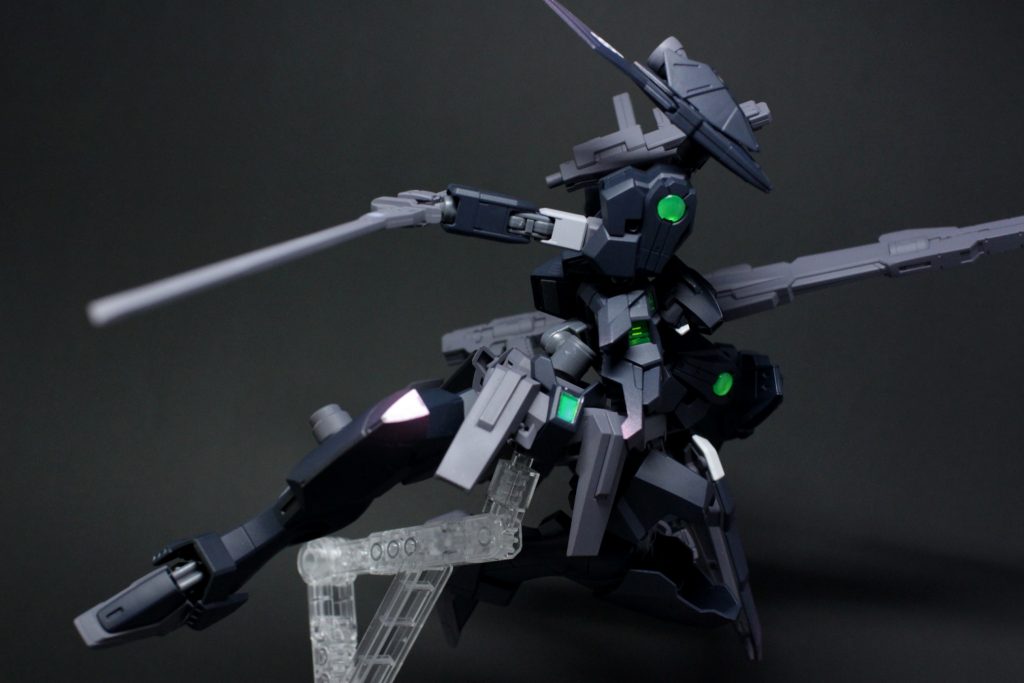 特徴的な細身の腰関節はアームアームズとスサノオの股関節を使用し、かなり広い可動範囲があります。構造的にはHGジェノアスをイメージしてもらえるとかなり近いですね。