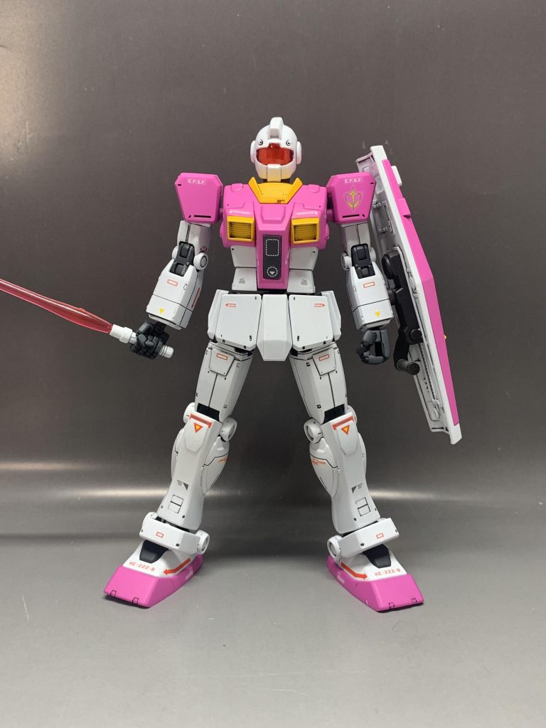 ホワイトベースの女性クルー制服的ですね。セイラ用の機体かな?なんて想像をしました。