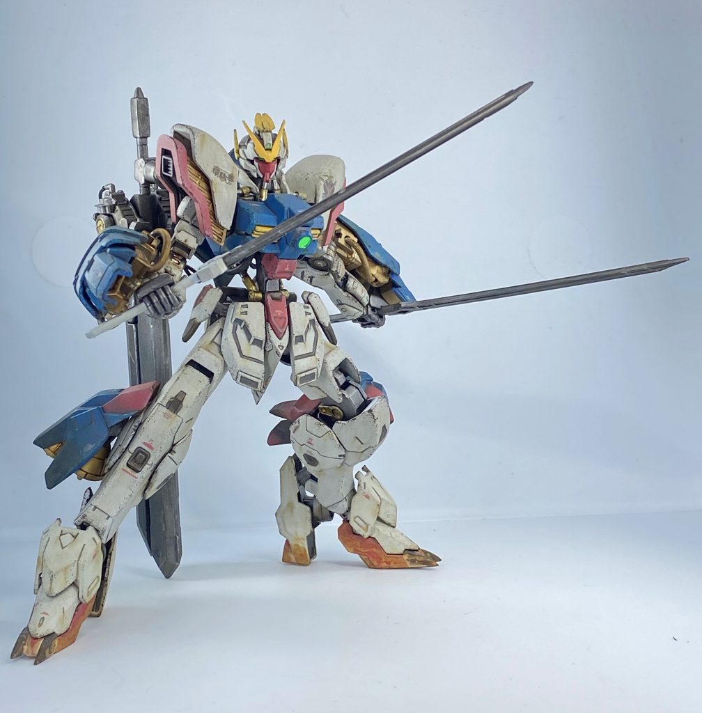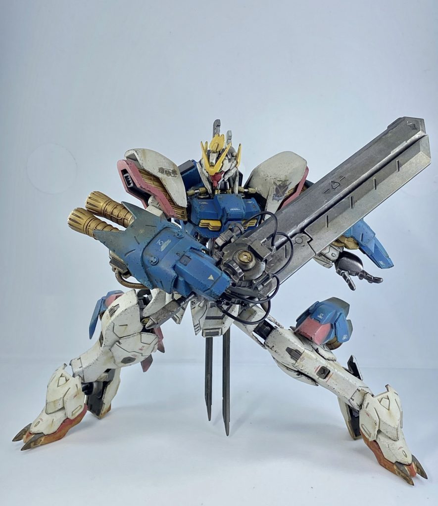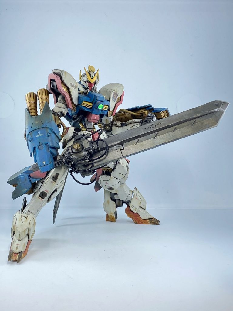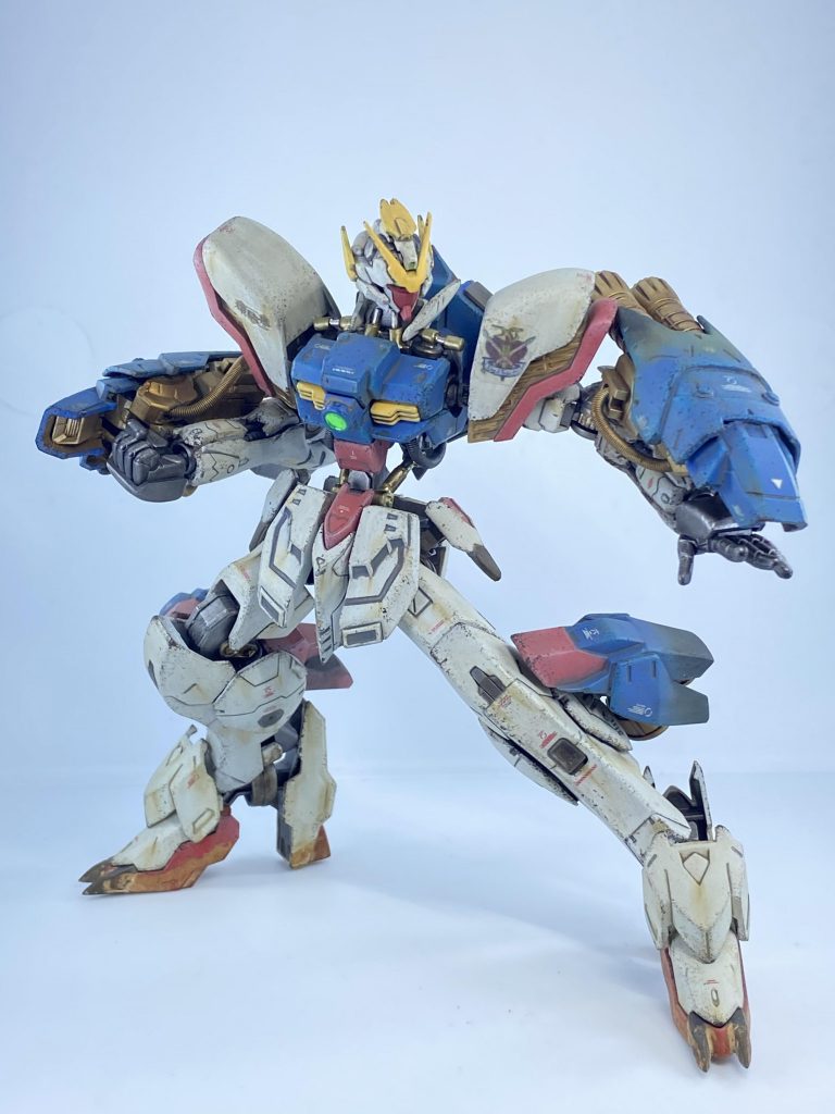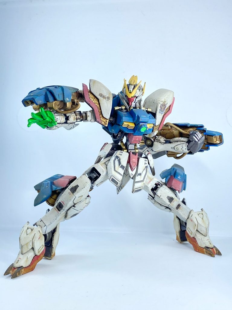 鉄血のオルフェンズの世界に、シャイニングガンダムが存在したらという設定で作成された、自分がGBNで使用するガンプラという感じで作りました。設定的にガルバルディリベイクに近いんで、名前もそれに倣いました。