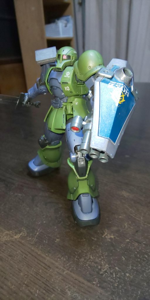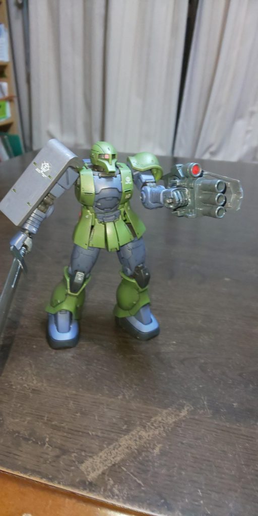 旧ザクにグフカスタムの盾と機関砲を持たせました。