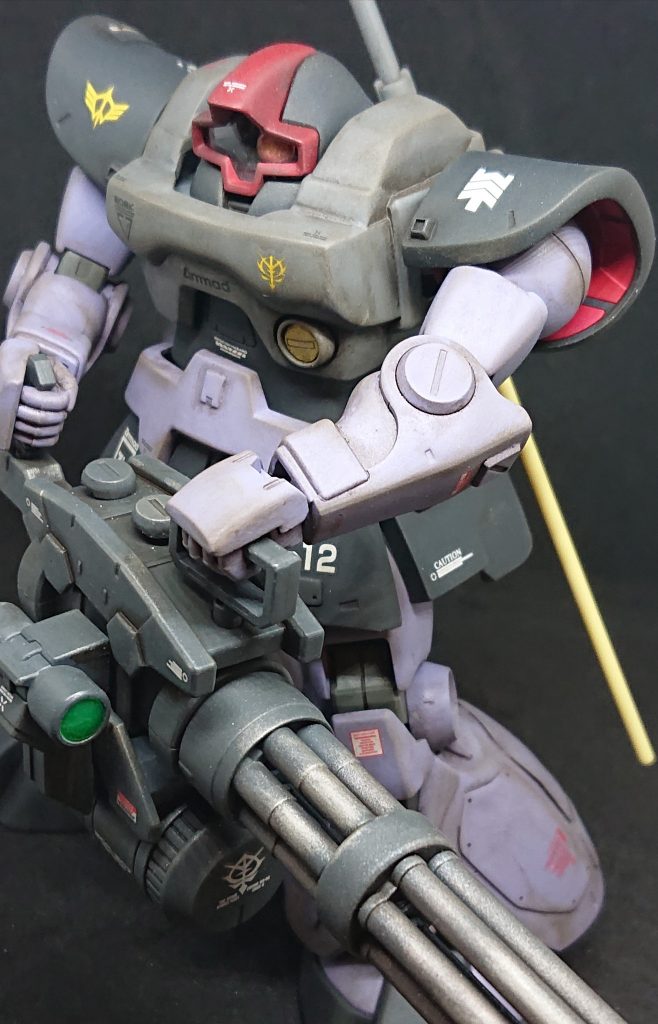 hgucドムです。10/6ドムの日にあわせて制作しました。初めてプラ板によるモールドの追加に挑戦しました。武装はジャイアントガドリングとヒートサーベルのみです。