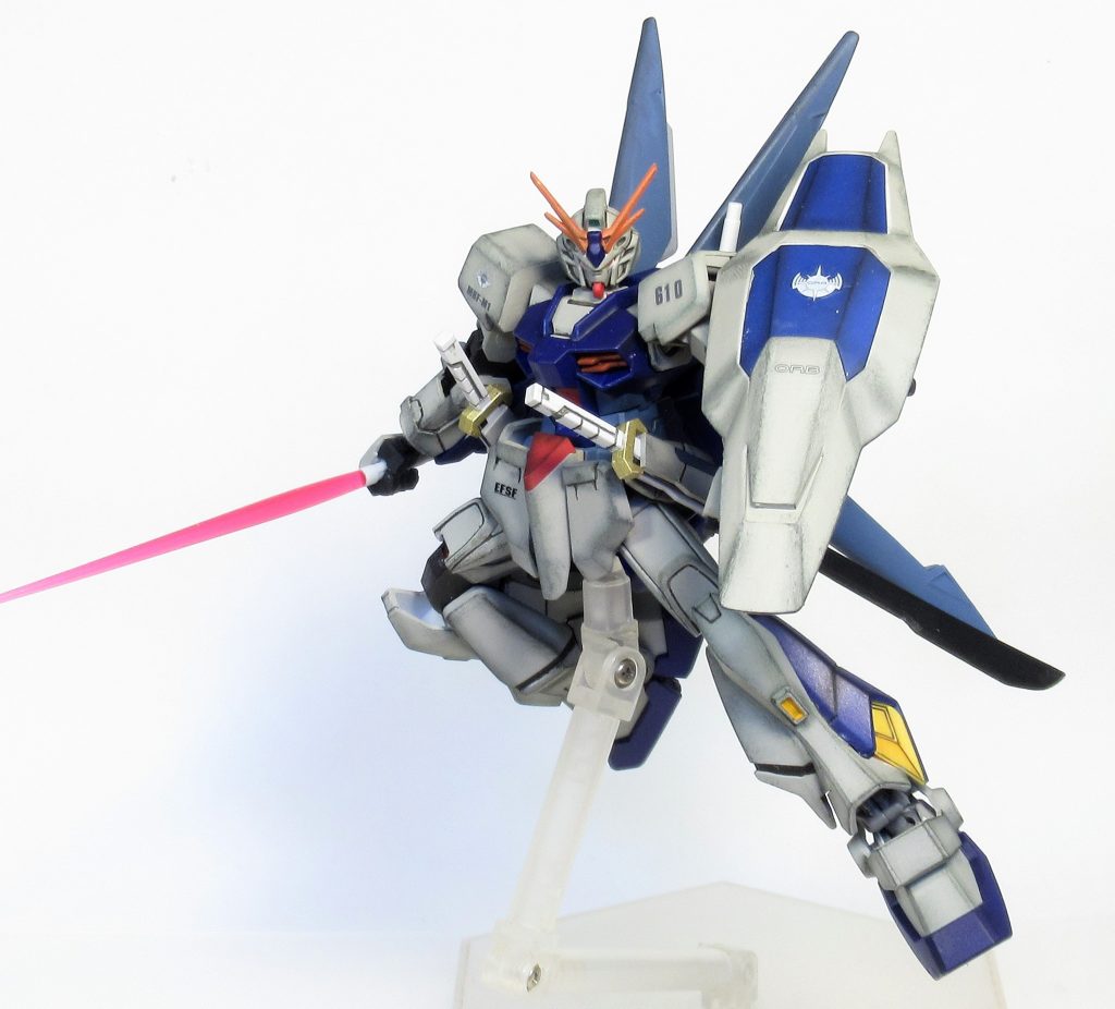 今回は「自分がガンプラバトルをするなら」をコンセプトに作成しました。トリスタンが好きな機体なのでトリスタンをベースに可動域を拡げるためと飛行もできるようにしたなと考え、M1アストレイとミキシングしました。