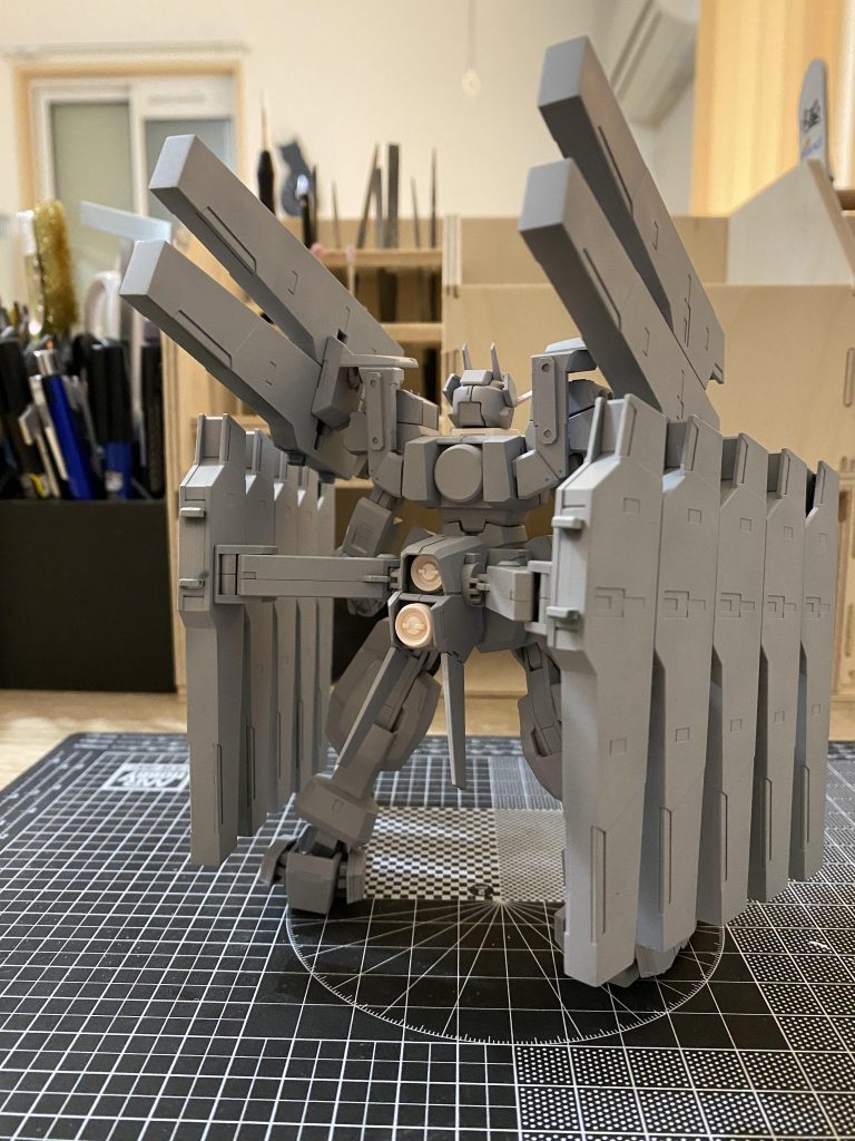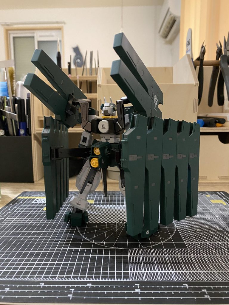 HG、RGのダブルオーのバックパックを改造し増設されたホルスタービットのマウンターを作りました。