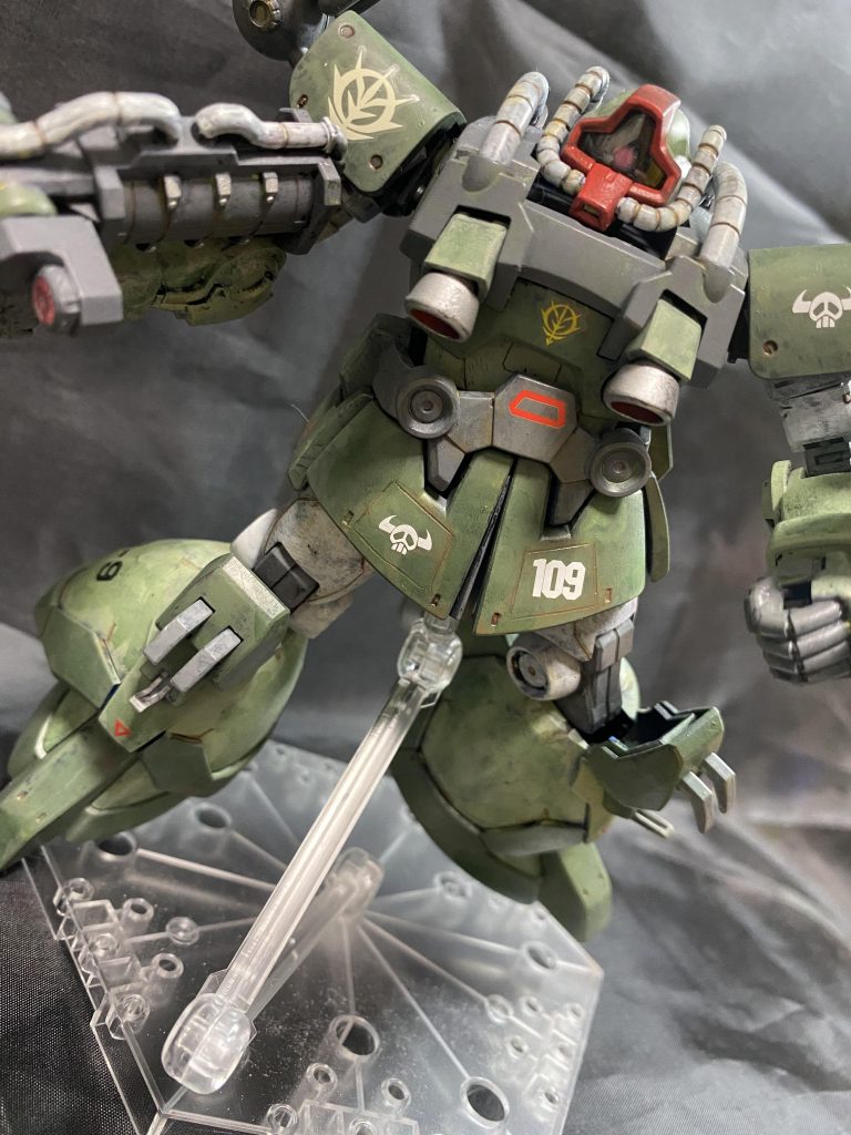 トクワン大尉がビグロ搭乗前にクローの有用性についてドムのバックパックに搭載し試験していたとの妄想設定です。ガンダムホビーライフのおまけデカールにトクワン大尉のデカールが付いているのをどうしても使いたくて、でもビグロじゃないいんだよねーと言う事で製作しました。