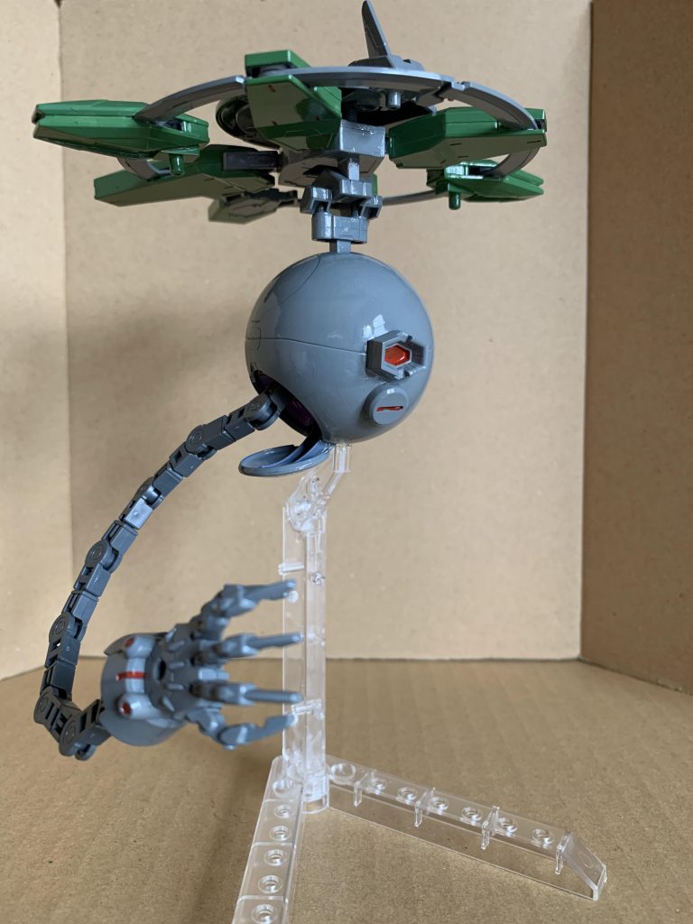 最終的にハロがそのままなのは不味いだろうと、適当なパーツでハロ感を相殺。目を消すだけでもハロで無くなるから不思議。