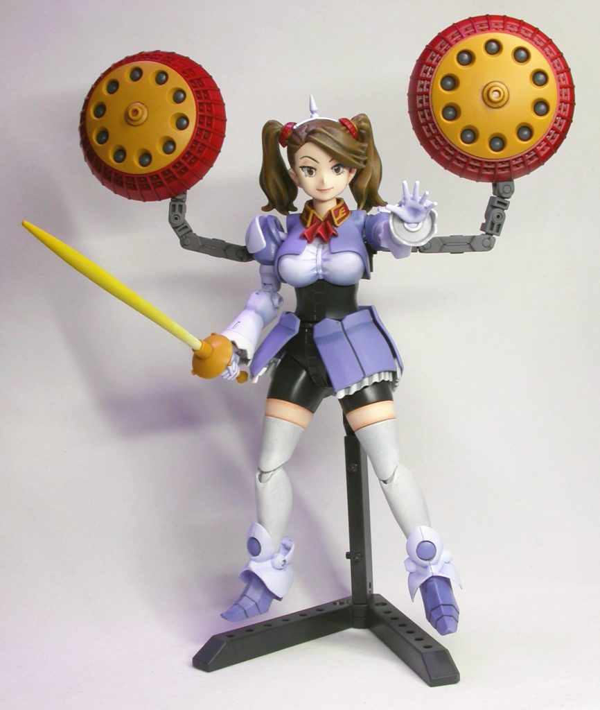 塗装はシール補っていた髪飾りと襟、設定と違った髪の毛と色分け不足が目立つ盾、合わせ目消しで目立ってしまったタイツなど。すべてシタデルカラーやファレホなどの水溶性アクリルの筆塗りです。髪、タイツ、サーベルはドライブラシ。