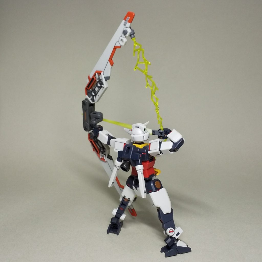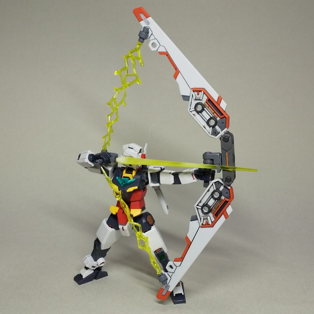 弓の基部に矢を受けるパーツを付け、右手に持たせた小型のビーム発振機は、SD νガンダムのライフルなどを切り詰めたりしてでっちあげました。