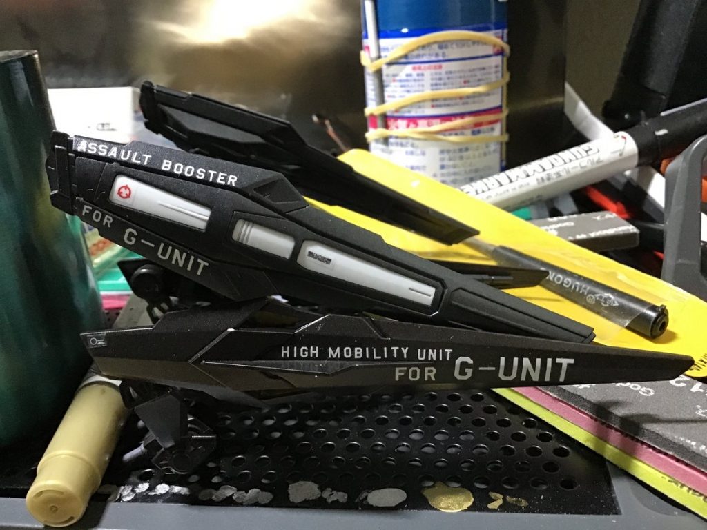 アサルトブースター単品で。世代の人にとっては一番見慣れたジェミナス。全体的にメタルブラックメインで塗りつつ、ちょこちょこデカール足してます。