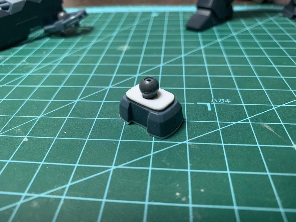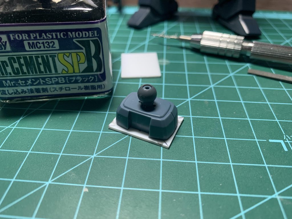 1度ボール部分を切り飛ばして1mm厚プラ板を切り飛ばした部分で挟むようにして接着します。