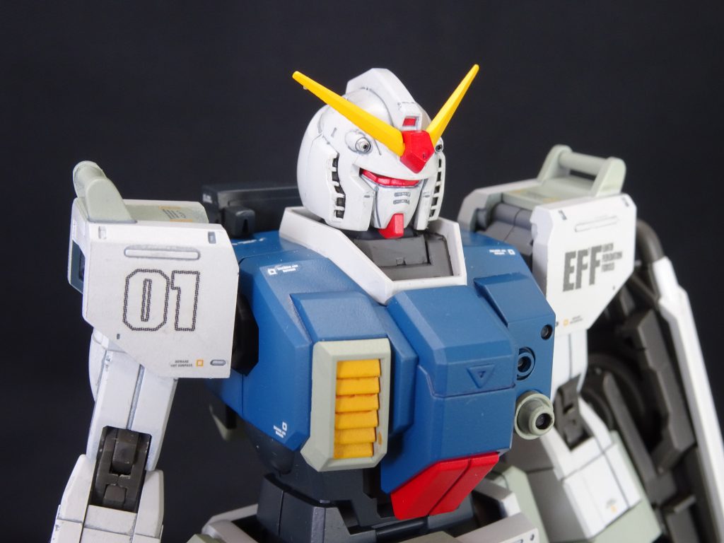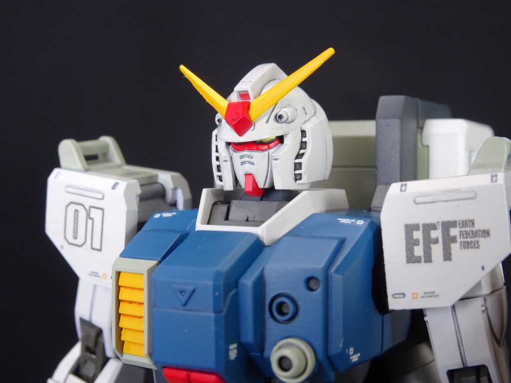 格好良く仕上がっていて良いですね。陸戦型ガンダムをカスタマイズして、エース仕様にした感じに見えますが何処の部隊に所属している機体だろうと思ってしまいます。