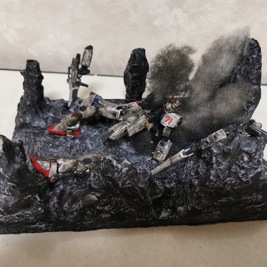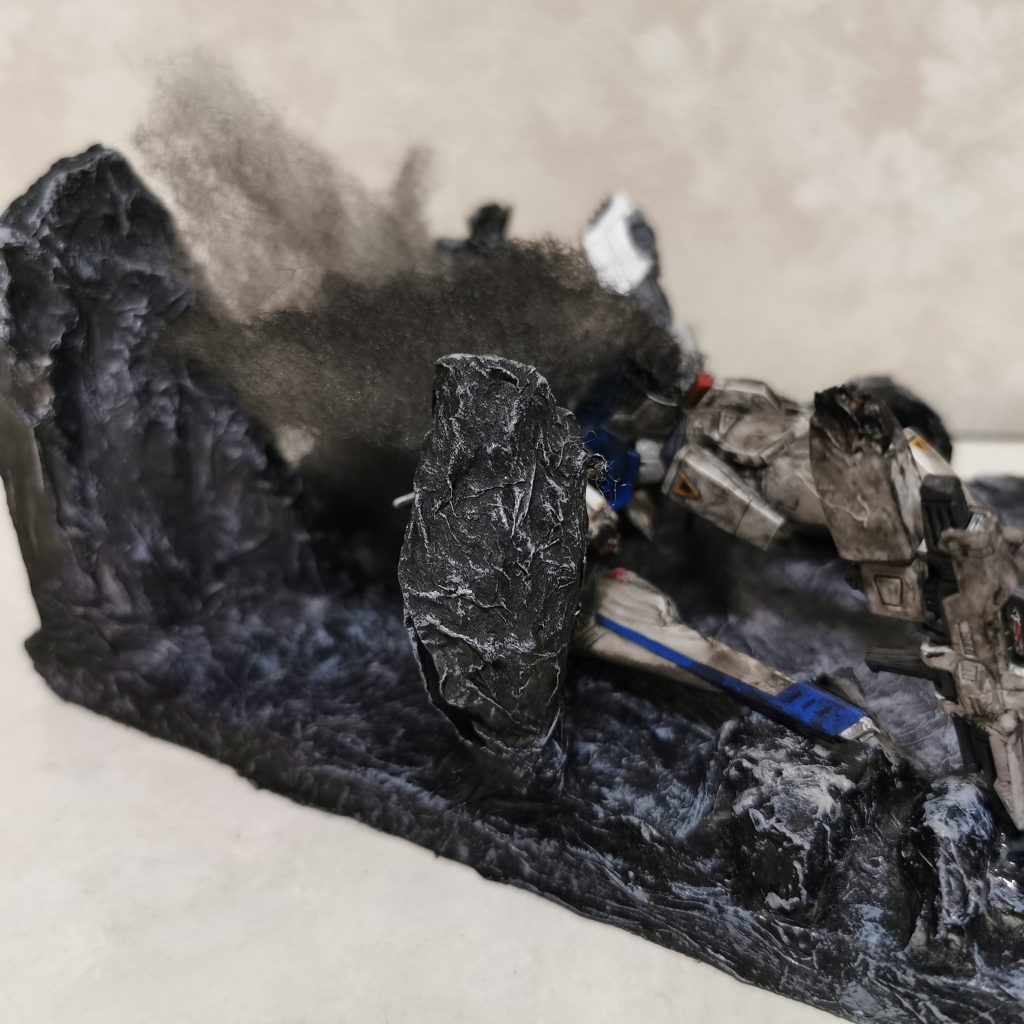 ネイビーブルーとサンドイエローでドライブラシして岩肌を演出しました。