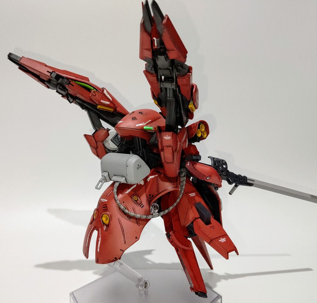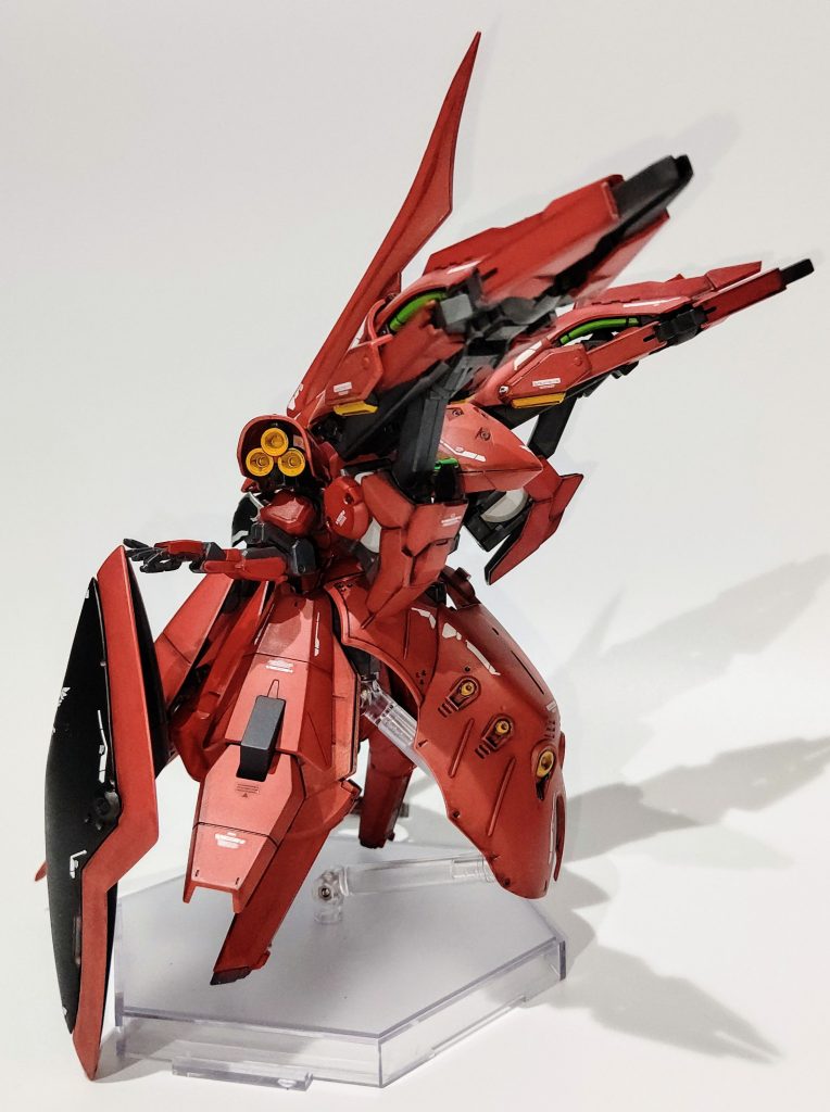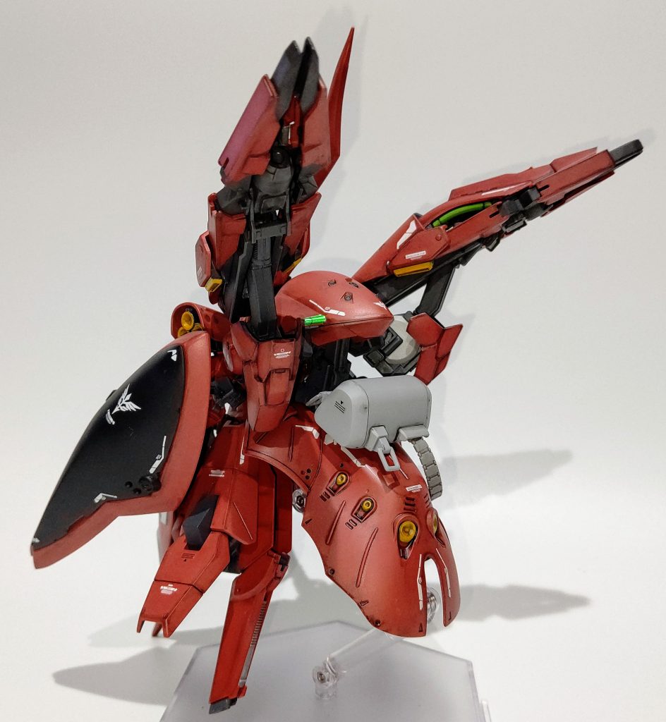 いつか役にたってくれそう…と残しておいたサザビーのリアスカートも、全然使っていなくて在庫過多なウーンドのシールドブースターも、CSナイチンゲールのパーツもそんなに違和感なく付いてくれたと思いますw