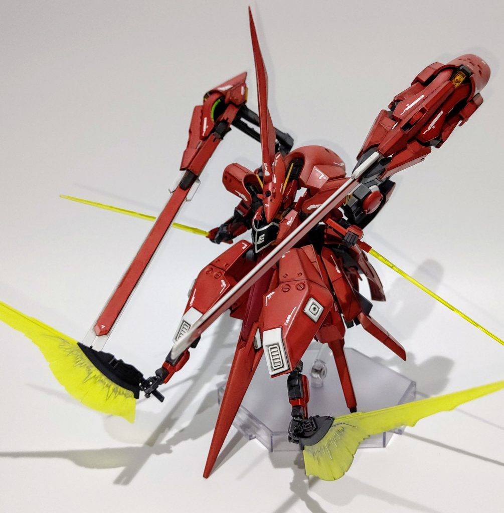 なんだか寂しいな…と感じた箇所に穴を開けて、パトレイバーをイメージしたネジモールドを仕込んで、シナンジュのデカールで情報量を増やしてみました‼️