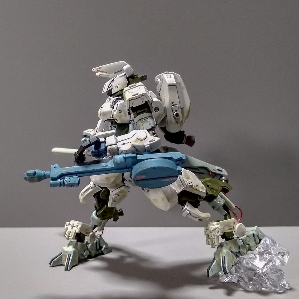 鉄血系ライフルをごちゃまぜしてネオジム磁石接続で持たせました。以前作った長物があったのでホワイト・グリントポーズを撮ってみました。
