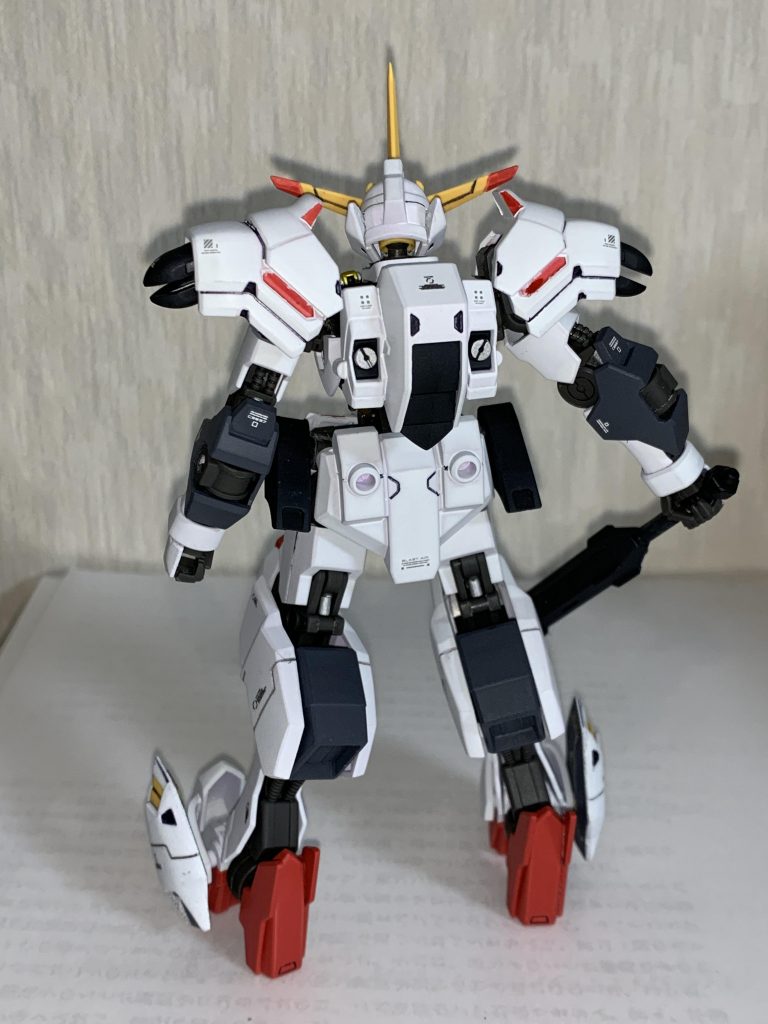 バックパックにワンポイントでシルバーを入れています。リアスカートのスラスターは本来黄色の部分が有るのですが、ここは好みでファントムグレーに変更しています