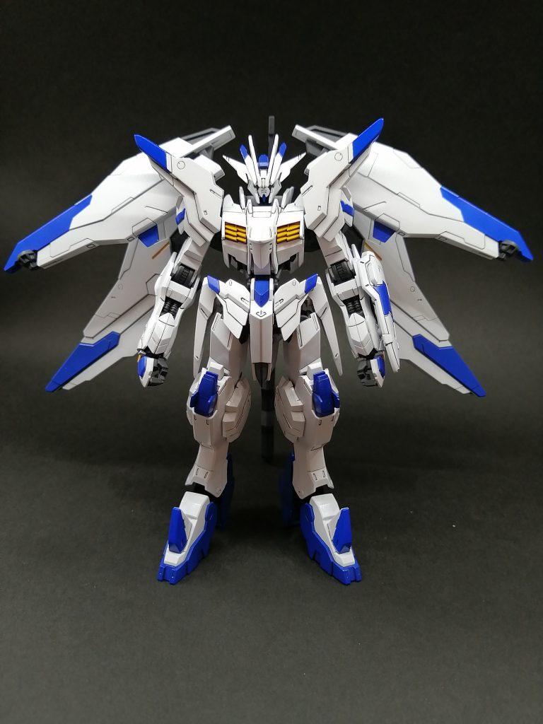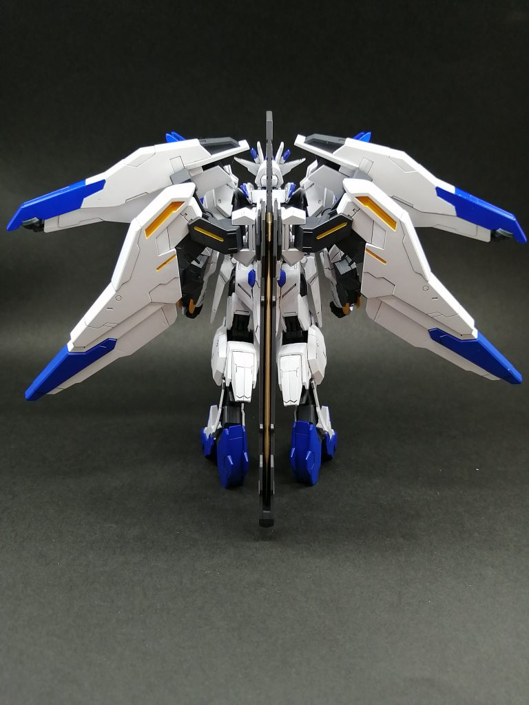 腰バインダーをバックパックに移植し、バエルっぽいシルエットに。翼は大きく展開するように可動部を加工しました