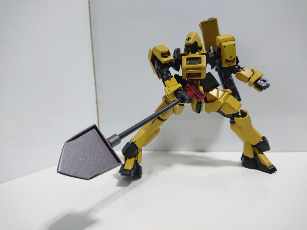 イメージ元の藤本里奈が元土方のアイドルという設定なので重機やユンボルみたいな感じにして武装もスコップと削岩機にしました。
