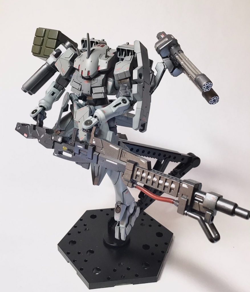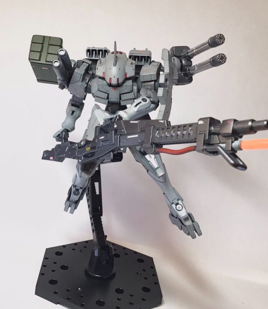 火力支援機をコンセプトにジャンクからガトリングと大型砲、プラ板で作ったミサイルを装備させました。
