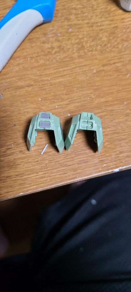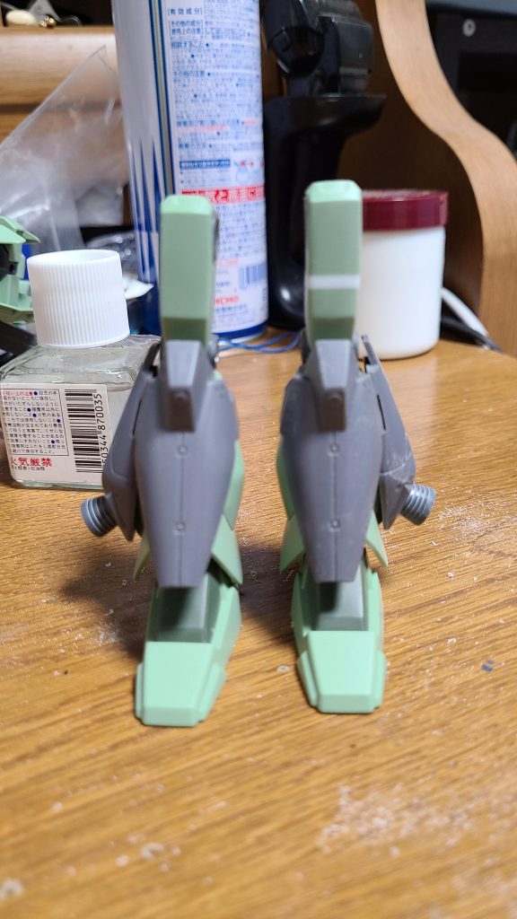 肩の合わせ目消しとダクトのディテールアップ、足を2ミリ延長、二の腕の幅詰め、色々やってみたものの上手くいったのは足くらい…(ヽ´ω`)