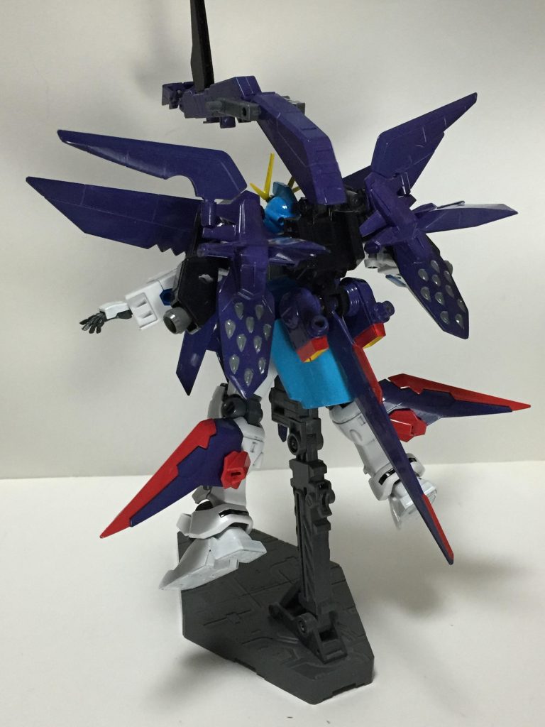 異質な感じのバックパック。こちらは小傘が常に持ち歩いている「傘」を基に作り上げ、本機と合体することで『機動力の向上』『武装のバリエーション増加』と機能アップに繋がるという設定に。当初は大型のシールドなどを装備しようかと思いましたが、安直すぎるのでこのような装備にしました。