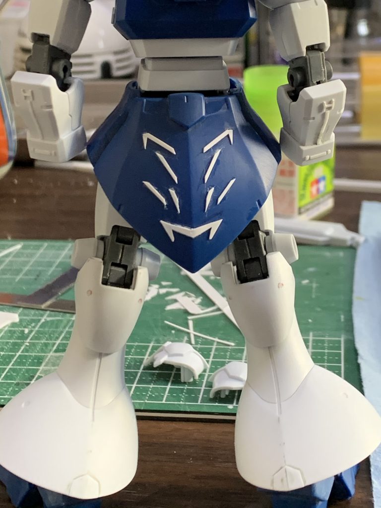頭やヒザのスリットを埋めて、プラ板ディテールを各所に施しました