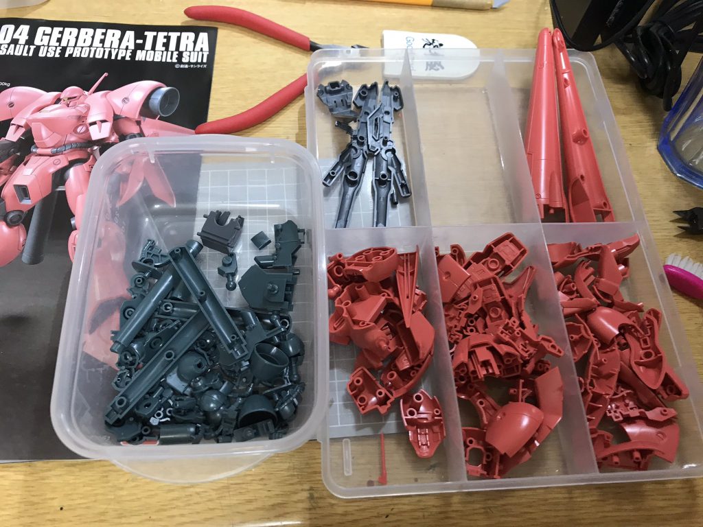 気合を入れて一日でいつか作りたかったガーベラテトラを作ってみましょう。製作イメージは量産ザクやギラドーガっぽいグリーン基調のアーミーカラーです。